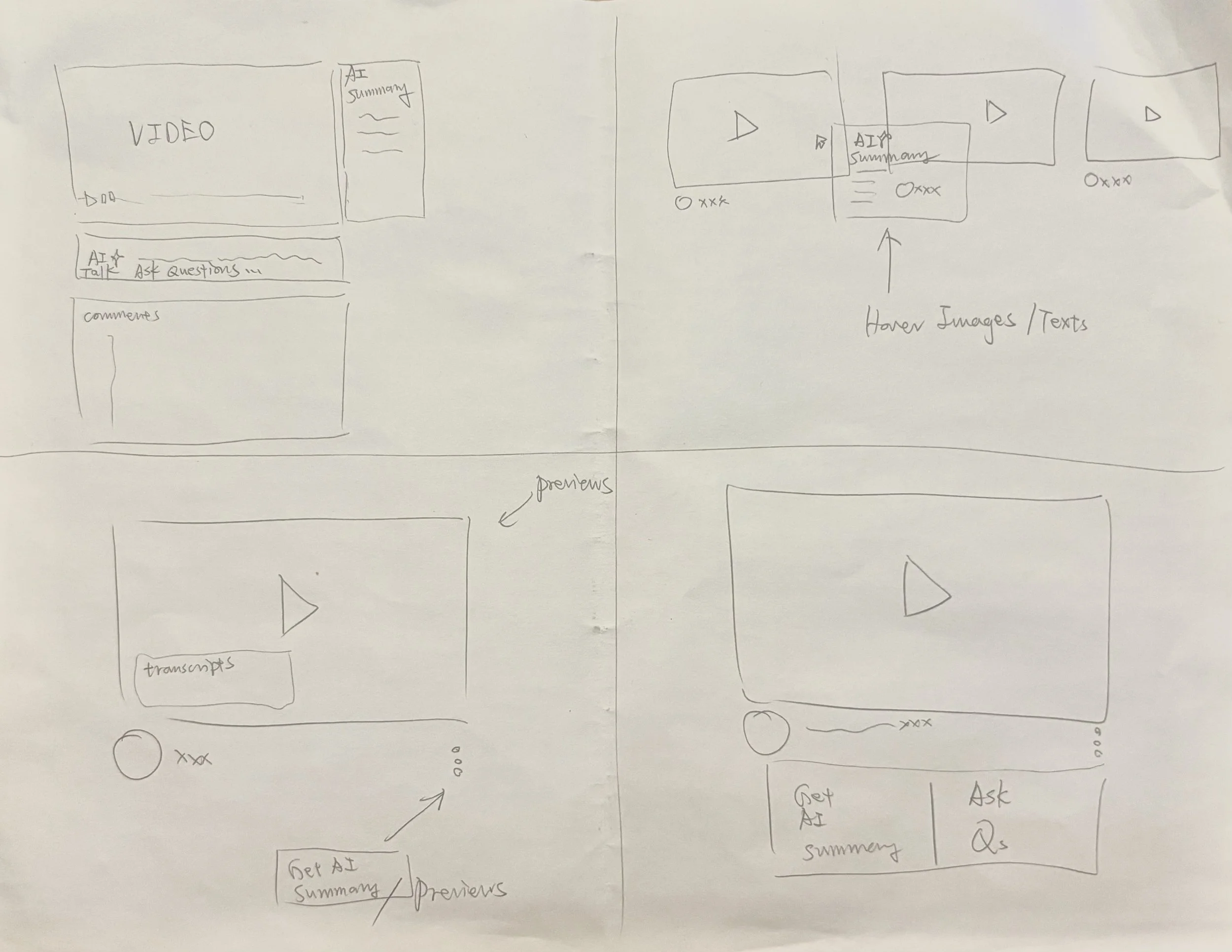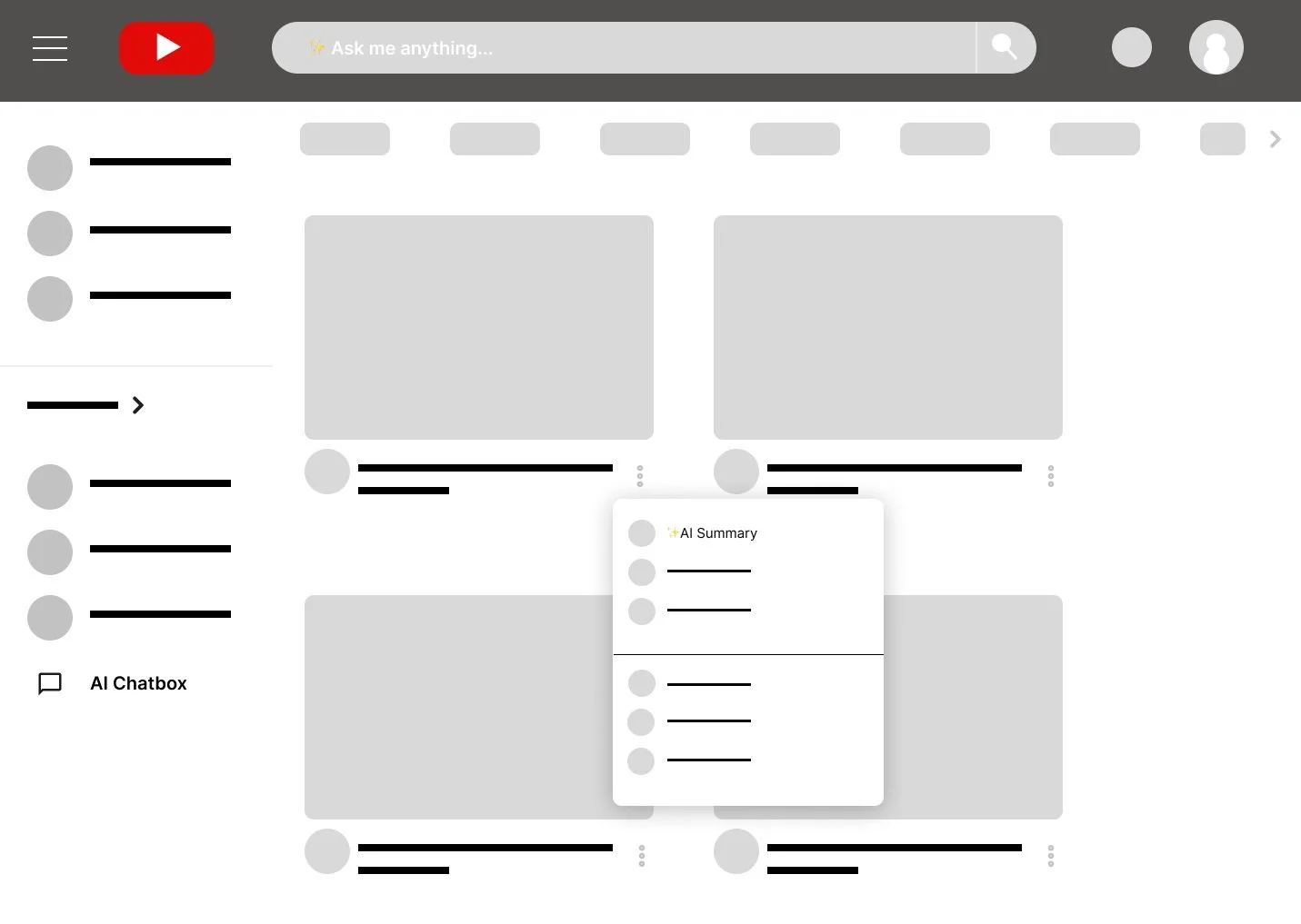 Redesigning Youtube’s AI-features that helps users discover relevant information faster by hovering summaries, intelligent Q&A, and personalized recommendations.